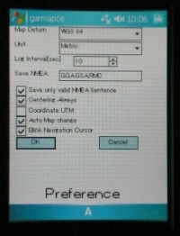 GarmapCEの機能には、NMEAデータ保存機能や緯度・経度表示機能。そして分割されたビットマップ地図を、緯度・経度が関係付けられた一枚の地図として整合表示する為の機能があります。この機能により現在地表示が可能に成り、ルート・トレースが可能になります。